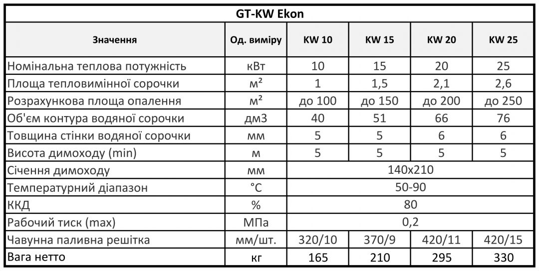Застосовуване паливо: основне - вугілля та деревина; альтернативне - довільне органічне паливо. Гарантійний термін - 60 місяців.